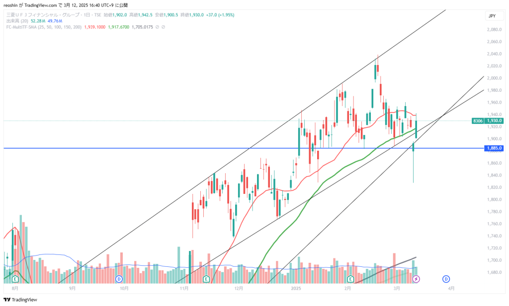三菱UFJを取引していたわけですが、昨日の大きな下げで損切となっており、-11700円でした。
