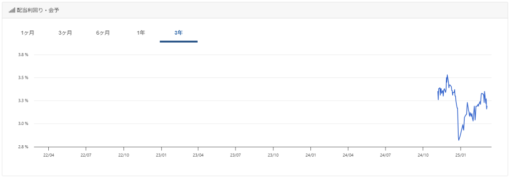 配当利回り推移が直近しか見れず。ひとまず3.5%以上を目標とするので良さそう。