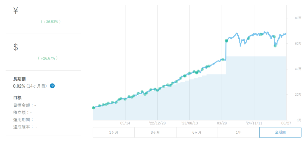 2021年10月15日に開始し、現在にかけて円換算で+32.12%となりました。