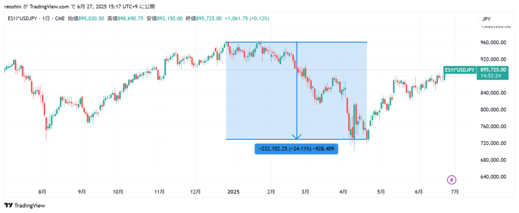 直近では2024年末から4月にかけて大きな下落がありました。