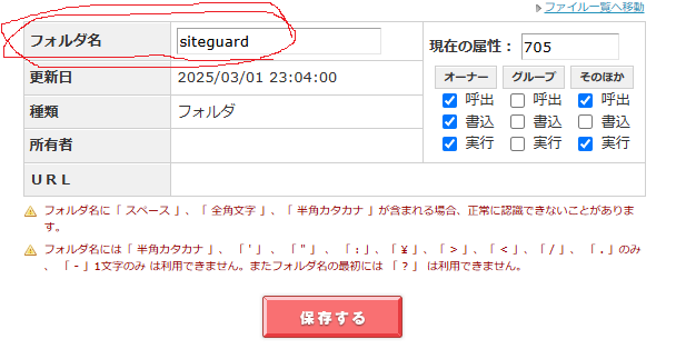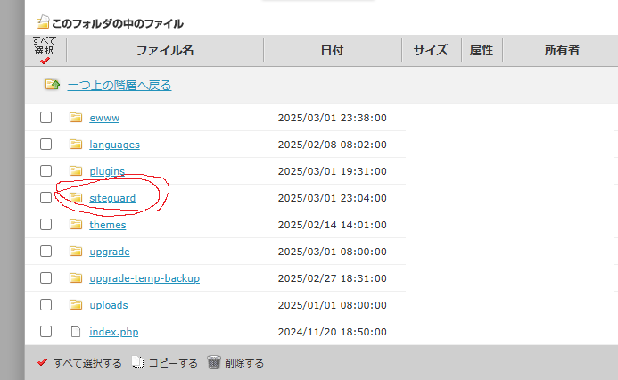 ここのsiteguardを押して、フォルダ名を適当に変えるとsiteguardが無効化されます。