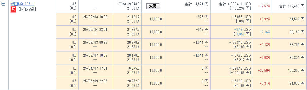私はNISAで投資している投資信託自体が今回でいうところの現物株に該当するもの(円安時にメリットが大きくなる)なので、円高ヘッジとしてCFD積立をしている状況です。