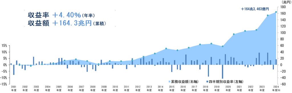 GPIFという期間があって、年金を運用してそれなりの収益が出ています(下記)。