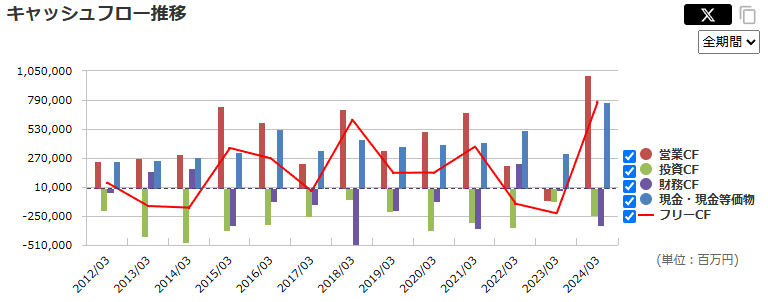 業績もCFも大きな問題は無いものの、売上高が減少傾向なのはやや気になるところ。