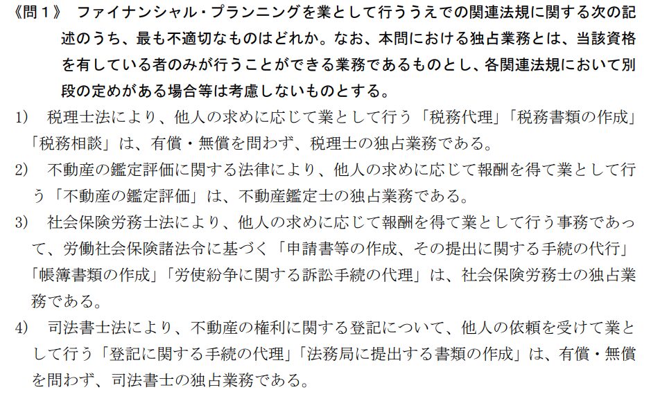 関連法規に関しては、「FPは一般的な説明はOKだけど、個別具体的なことはできない」ということです。