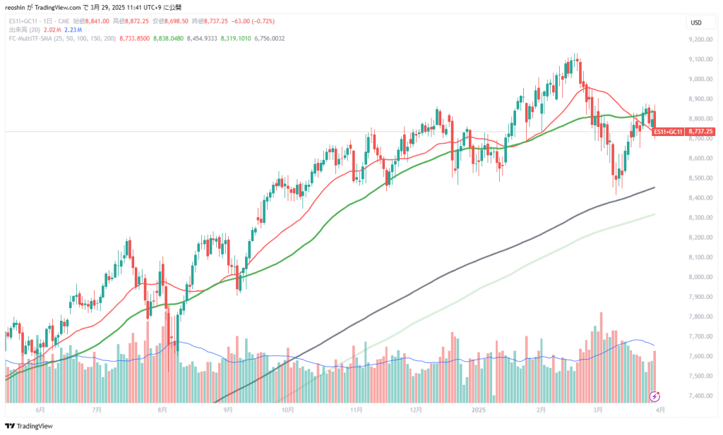 なので、S&P500先物+金先物を指標にするのが良い印象。