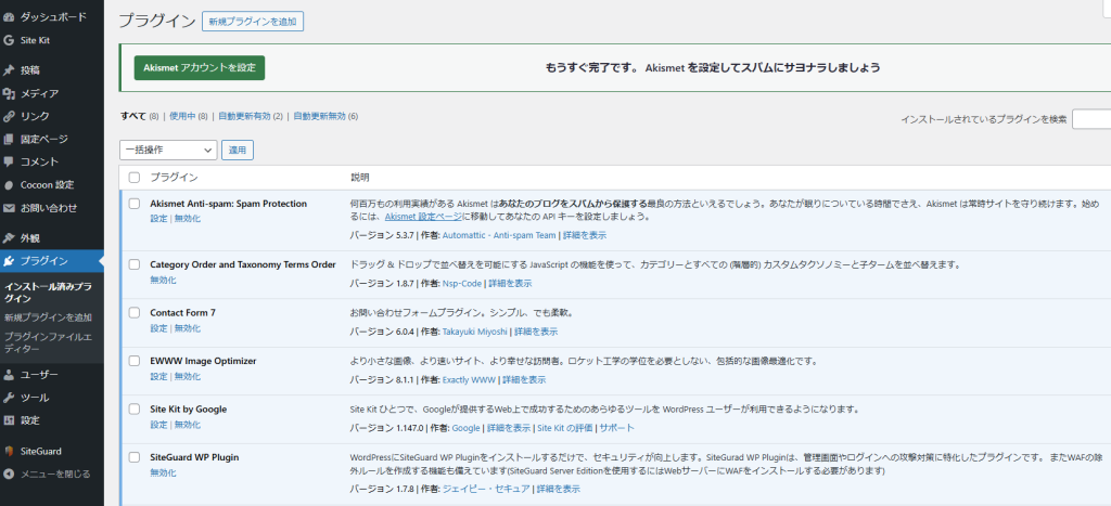 - スパム対策として「Akismet Anti-spam: Spam Protection」