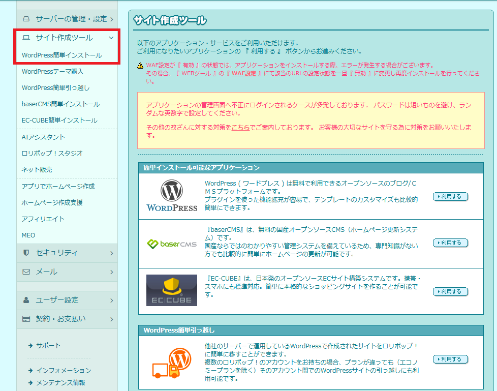 以下はロリポップの画面で説明します。
